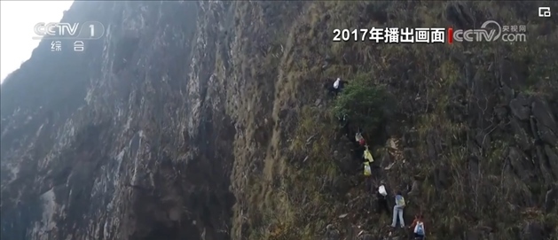不光是在島上,懸崖峭壁間中國人也能種樹。在重慶巫山縣,2017年,這里的石漠化面積達(dá)到整個縣面積的四分之一。植樹工靠著人力肩扛手提運樹苗,硬是在石頭山上種成了樹,如今的巫山縣森林覆蓋率已超過70%。