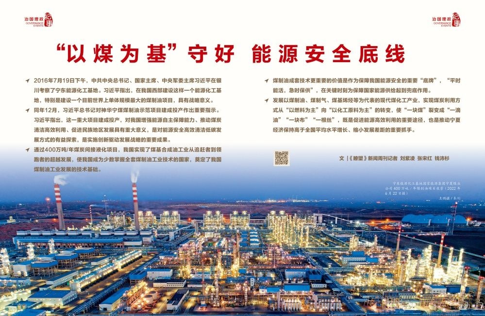 2016年7月19日下午,中共中央總書記、國(guó)家主席、中央軍委主席習(xí)近平在銀川考察了寧東能源化工基地。習(xí)近平指出,在我國(guó)西部建設(shè)這樣一個(gè)能源化工基地,特別是建設(shè)一個(gè)目前世界上單體規(guī)模最大的煤制油項(xiàng)目,具有戰(zhàn)略意義。