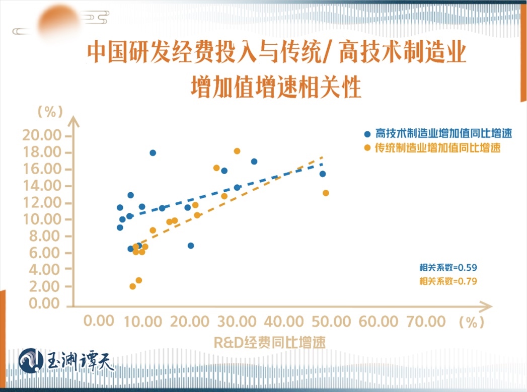 在中國,對于傳統(tǒng)產(chǎn)業(yè)而言,研發(fā)經(jīng)費投入對增長的貢獻,反而更容易顯現(xiàn)。