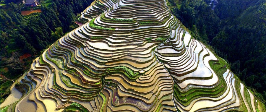 這里被譽為中國最好梯田之一,苗族是“稻飯魚羹”的民族,梯田中散落著苗鄉(xiāng)特有的吊腳樓。是苗族人世世代代留下的杰作。