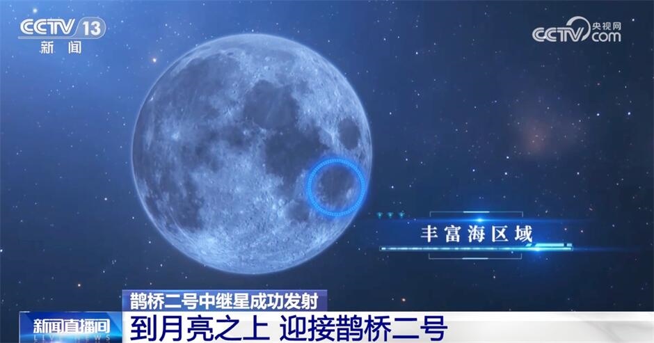 不過不要緊,我現(xiàn)在所在的這個(gè)位置也不是隨便選的,看點(diǎn)很多。專家告訴我,這里是月球上觀測(cè)鵲橋二號(hào)星箭分離的一個(gè)理想位置,而且這里還跟中國(guó)的探月工程有著很深的淵源。這就是月球的豐富海區(qū)域。豐富海,耳熟嗎?15年前,也就是2009年3月1日,中國(guó)探月工程嫦娥一號(hào)探測(cè)器就是在這里完成受控撞月的,也正是這英勇一撞,為接下來的月球探測(cè)獲取了很有價(jià)值的數(shù)據(jù)。豐富海在月球的位置也很醒目,下次月圓的時(shí)候,你抬頭看月亮,找到月球東南方向這一片暗黑色的斑塊,就是豐富海啦!
