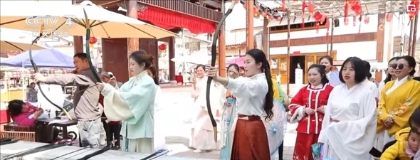 在四川遂寧市大英縣卓筒井鎮(zhèn),1.2萬畝桃花競相綻放,當(dāng)?shù)嘏e行桃花美食春游季活動,引來各地游客“打卡”。在管咸市街區(qū),體驗(yàn)蹴鞠、飛花令等宋代元素活動,品嘗長桌宴。卓筒井鎮(zhèn)擁有首批國家級非物質(zhì)文化遺產(chǎn)“井鹽深鉆汲制技藝”,當(dāng)?shù)貙⒈彼蔚闹汽}文化與發(fā)展二十多年的甜桃產(chǎn)業(yè)“穿越”組合,打造出遂寧鄉(xiāng)村振興精品示范村“宋井桃源”,讓村民吃上了“旅游飯”。