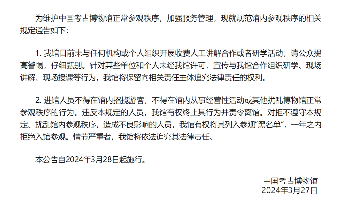 ·中國考古博物館發(fā)布公告,將規(guī)范館內參觀秩序。