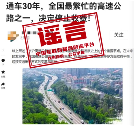 ·有網民稱“京滬高速公路停止收費”,有關部門辟謠。