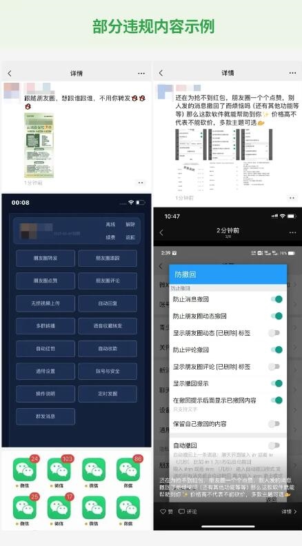 3月26日,微信安全中心發(fā)布《針對(duì)在微信使用“外掛”行為的打擊公告》,《公告》指出,根據(jù)《微信個(gè)人賬號(hào)使用規(guī)范》規(guī)定,微信明確禁止使用各類(lèi)“外掛”。但近期發(fā)現(xiàn),有部分用戶(hù)存在多次違規(guī)使用“外掛”軟件,或在朋友圈發(fā)布“外掛”售賣(mài)信息的行為。對(duì)此,微信安全團(tuán)隊(duì)進(jìn)行了專(zhuān)項(xiàng)清理,并將持續(xù)加大清理力度。
