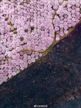 近日,有網(wǎng)友在貴州安順拍攝到這樣的畫面:山脊一側(cè)已是山花爛漫;而另一側(cè),曾被山火燒過的土地上,嫩芽悄悄破土。網(wǎng)友評論:這就是野火燒不盡春風(fēng)吹又生的感動。圖自@歐陽陽陽Soleil?