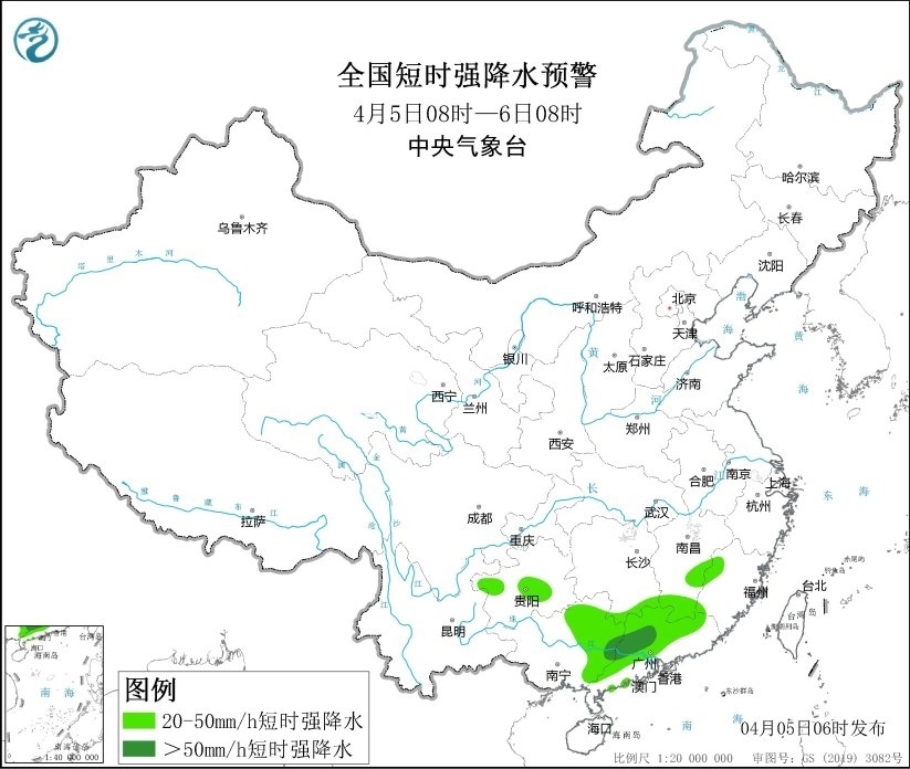 央視網(wǎng)消息:中央氣象臺(tái)4月5日06時(shí)發(fā)布強(qiáng)對流天氣藍(lán)色預(yù)警。預(yù)計(jì)4月5日08時(shí)至6日08時(shí),江西南部、廣西東部、廣東中西部和北部等地的部分地區(qū)將有8級以上雷暴大風(fēng)或冰雹天氣;其中,廣西東北部、廣東中西部和北部等地的局地將有10級以上雷暴大風(fēng);另外,湖南南部、江西南部、福建西部、貴州西北部和中部、廣西東部、廣東中西部和北部等地的部分地區(qū)將有小時(shí)雨量大于20毫米的短時(shí)強(qiáng)降水天氣;其中,廣西東部和廣東中西部等地的局地最大小時(shí)雨量大于50毫米,個(gè)別地方可達(dá)80毫米以上。