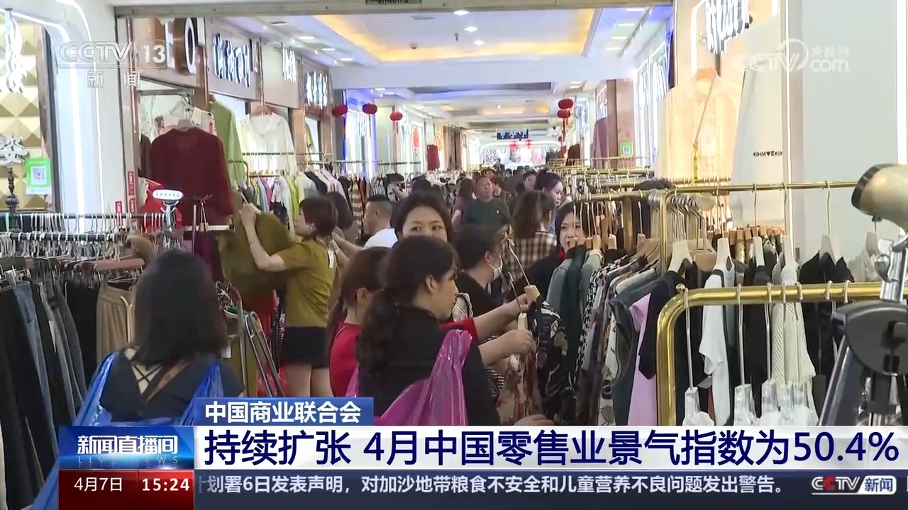 央視網(wǎng)消息:中國商業(yè)聯(lián)合會最新發(fā)布的中國零售業(yè)景氣指數(shù)顯示,4月份,中國零售業(yè)景氣指數(shù)為50.4%,連續(xù)一年維持在擴張區(qū)間。全國商品經(jīng)營類企業(yè)對4月份盈利增長恢復的預期開始好轉(zhuǎn)。