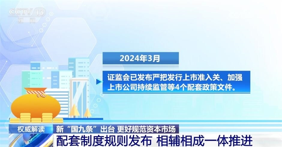 圍繞新“國(guó)九條”,證監(jiān)會(huì)若干配套制度規(guī)則也相繼發(fā)布。今年3月,證監(jiān)會(huì)已發(fā)布嚴(yán)把發(fā)行上市準(zhǔn)入關(guān)、加強(qiáng)上市公司持續(xù)監(jiān)管等4個(gè)配套政策文件。12日,證監(jiān)會(huì)又發(fā)布加強(qiáng)退市監(jiān)管的配套政策文件,并對(duì)6項(xiàng)具體制度規(guī)則公開征求意見,交易所也就一批自律規(guī)則同步征求意見。
