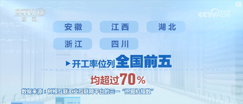 從區(qū)域看,有25個(gè)省份正在“提速快跑”,開工率創(chuàng)下2024年以來的新高。安徽、江西、湖北、浙江、四川開工率位列全國前五,均超過70%。