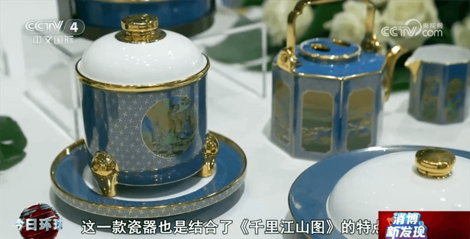 江西省景德鎮(zhèn)市商務(wù)局工作人員章少聰介紹稱(chēng):“這一幅畫(huà)是北宋王希孟先生創(chuàng)作的,叫作《千里江山圖》。這一款瓷器也是結(jié)合了《千里江山圖》的特點(diǎn),把中國(guó)傳統(tǒng)畫(huà)中的山水、花鳥(niǎo)都完全在瓷器上面展現(xiàn)出來(lái)?!?/p>