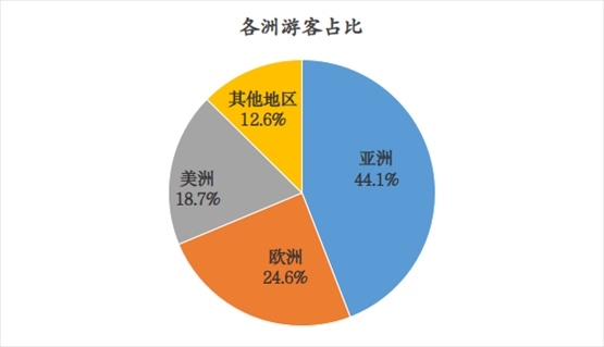 一、近程市場(chǎng)恢復(fù)良好。港澳臺(tái)地區(qū)游客恢復(fù)速度較快,合計(jì)為9.5萬(wàn)人次,恢復(fù)到2019年的80.1%。游客占比方面,亞洲游客(不包括港澳臺(tái)地區(qū))占比為44.1%,較2019年提升7.2個(gè)百分點(diǎn),東南亞地區(qū)游客恢復(fù)情況最好,其中主要客源國(guó)為馬來西亞、泰國(guó)、新加坡。