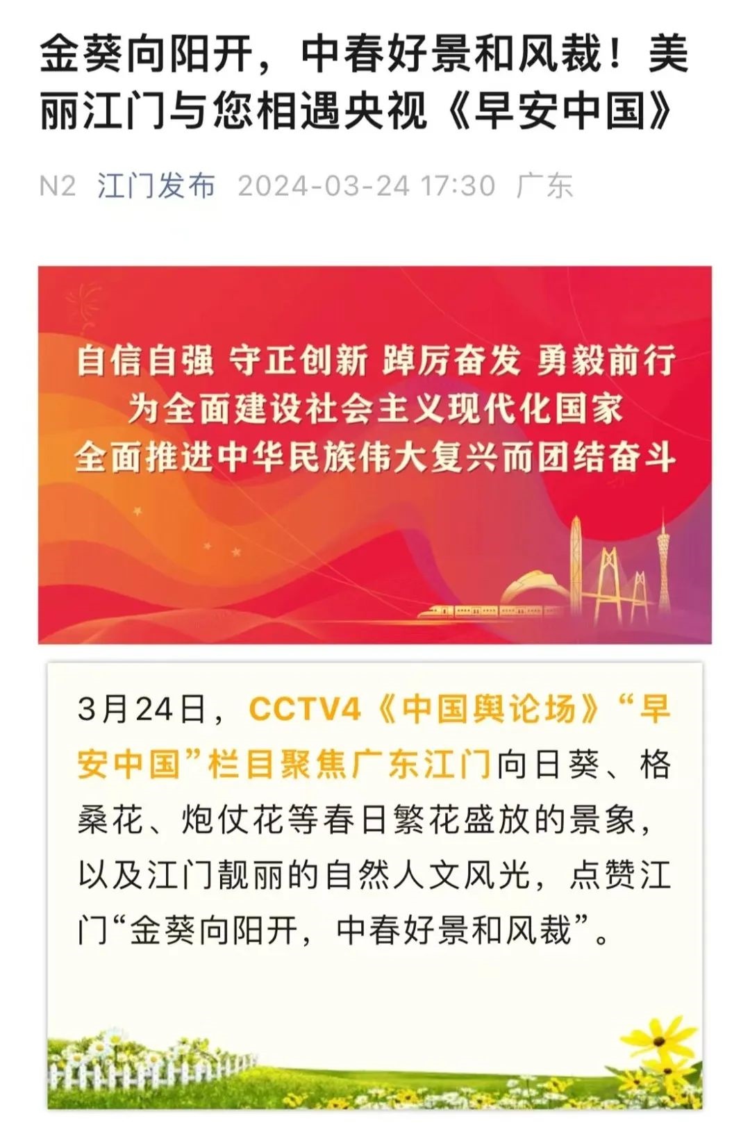 “央視帶你看綠美臺山,這次關(guān)注的是......”“就在明早7點!央視奉上重慶大足人文美景,向全球觀眾道早安!”“央視聚焦!徐州,有美景,有年味”“金葵向陽開,中春好景和風裁!美麗江門與您相遇央視《早安中國》”……越來越多的地方政府伸出橄欖枝,希望《早安中國》多“來”當?shù)匾挥[好風光。