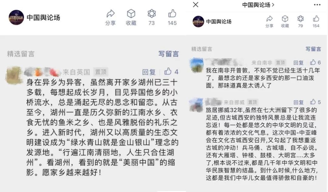 主創(chuàng)團隊充分考慮到這些背井離鄉(xiāng)、愛國戀家的海外華僑華人的迫切需要,著力突出《早安中國》的互動性,將更多時間、更多機會給到他們。網(wǎng)友希望看到祖國的哪些美景,哪個地方呼聲最高,哪個地方就成為了《中國輿論場》大小屏直播內(nèi)容的一個節(jié)目版塊。