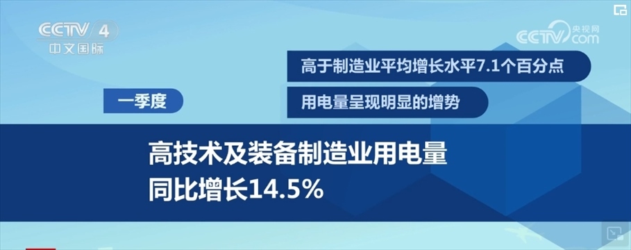 從行業(yè)看,一季度,高技術(shù)及裝備制造業(yè)用電量同比增長(zhǎng)14.5%,高于制造業(yè)平均增長(zhǎng)水平7.1個(gè)百分點(diǎn),用電量呈現(xiàn)明顯的增勢(shì)。
