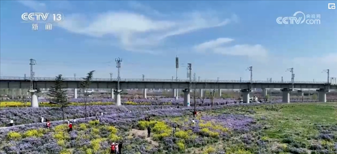 一年前,這里還是一片工地遺留的建筑渣土。當(dāng)?shù)嘏c科研團(tuán)隊合作,引進(jìn)營養(yǎng)土技術(shù),一年內(nèi)就將撂荒地變成了“桃花源”。花海邊還擺起了創(chuàng)意市集,結(jié)合“花”元素的花餑餑、非遺農(nóng)民畫和黑陶工藝品,吸引了不少游客消費(fèi)。