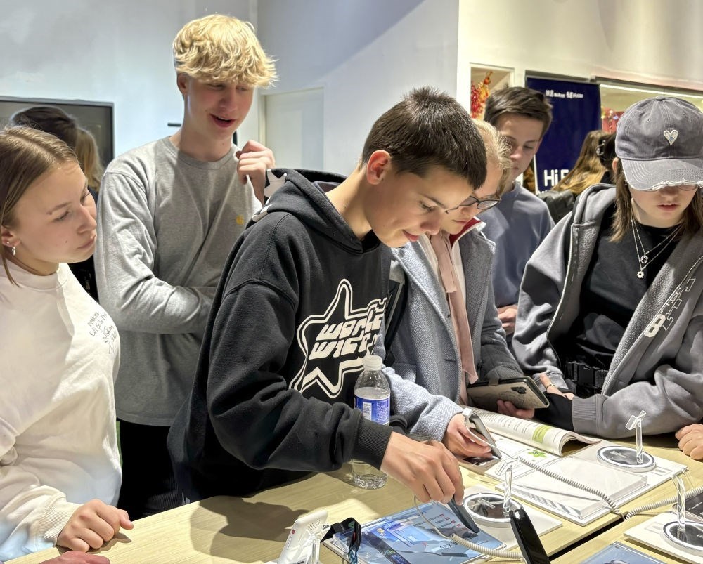 2024年4月9日,中德兩國中學生在位于北京中關村軟件園一家企業(yè)參觀。新華社記者 趙旭 攝