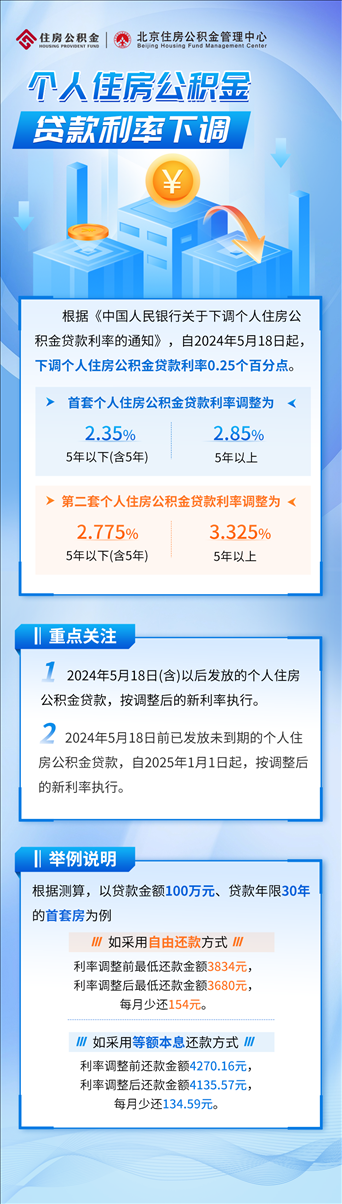 2024年5月18日之前申請且未發(fā)放的個人住房公積金貸款,以及2024年5月18日(含)之后申請的個人住房公積金貸款,均執(zhí)行調(diào)整后的利率。