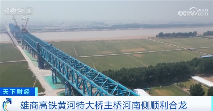 央視網(wǎng)消息:雄商高鐵是京雄商高鐵的一段,連接河北省雄安新區(qū)和河南商丘。5月18日,雄商高鐵黃河特大橋河南側(cè)的鋼桁梁架設(shè)施工全部完成,這標(biāo)志著主橋河南側(cè)已經(jīng)順利合龍。截至目前,全橋鋼桁梁架設(shè)的進(jìn)度超過(guò)了87%,預(yù)計(jì)主橋全橋7月份合龍。