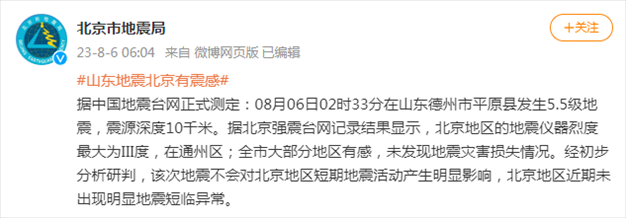 北京市地震局:北京地區(qū)近期未出現(xiàn)明顯地震短臨異常 據(jù)北京強震臺網(wǎng)記錄結(jié)果顯示,北京地區(qū)的地震儀器烈度......