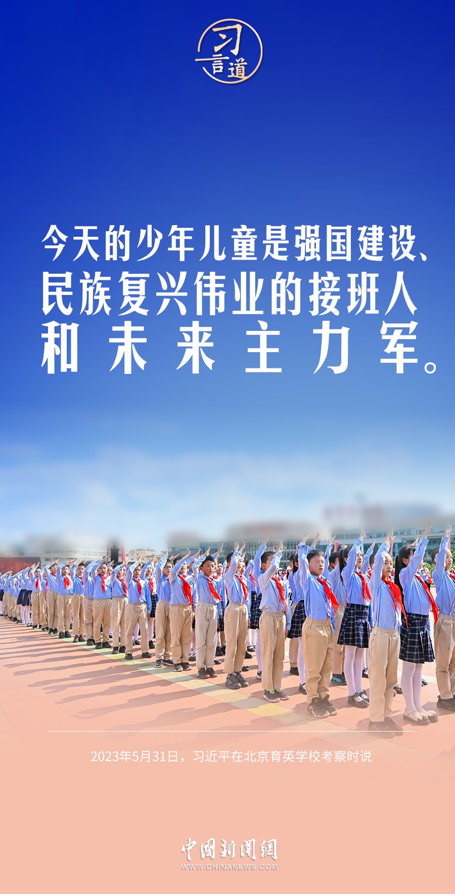 今天是“六一”國際兒童節(jié),習(xí)近平總書記曾在多個場合表達(dá)對少年兒童的關(guān)懷和期望,希望少年兒童從小立志向、有夢想。