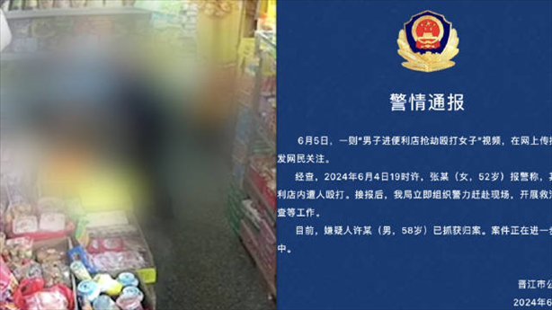 ·便利店女店主遭男子持續(xù)毆打,福建晉江警方:已抓獲58歲嫌疑人。