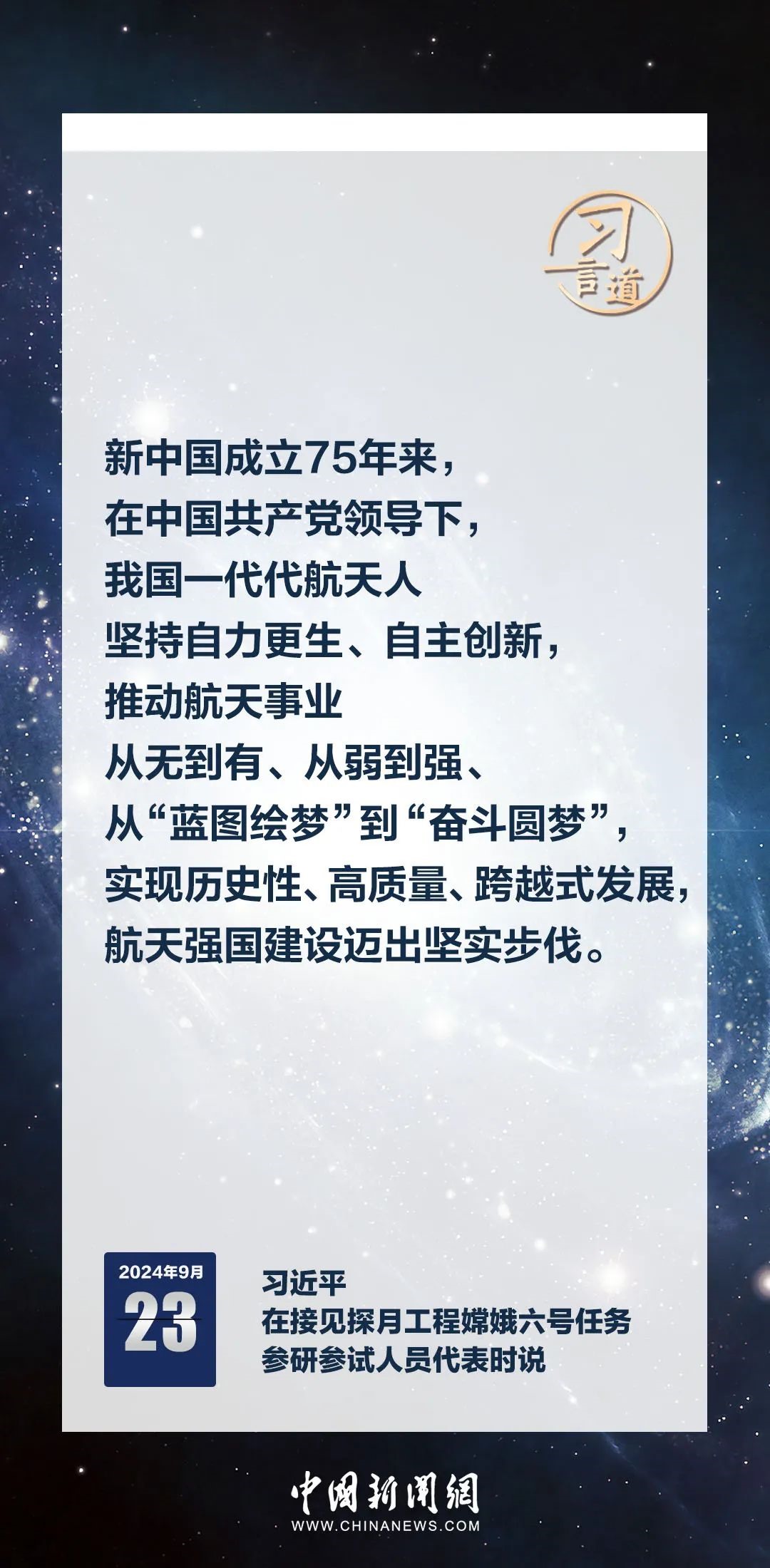 中共中央總書(shū)記、國(guó)家主席、中央軍委主席習(xí)近平23日在人民大會(huì)堂接見(jiàn)探月工程嫦娥六號(hào)任務(wù)參研參試人員代表時(shí)發(fā)表重要講話(huà)。習(xí)近平指出——