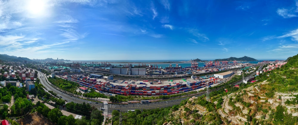 上合組織(連云港)國際物流園內的集裝箱場站(2024年6月26日攝,無人機照片)。