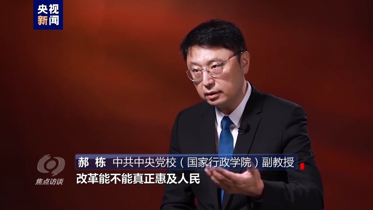 中共中央黨校(國(guó)家行政學(xué)院)副教授 郝棟:所以我們各項(xiàng)改革措施,都要緊緊圍繞著人民的需求來(lái)展開(kāi),那么我們改革到底成不成功,改革能不能真正惠及人民,這個(gè)評(píng)判標(biāo)準(zhǔn)、這把尺子是握在人民的手中。