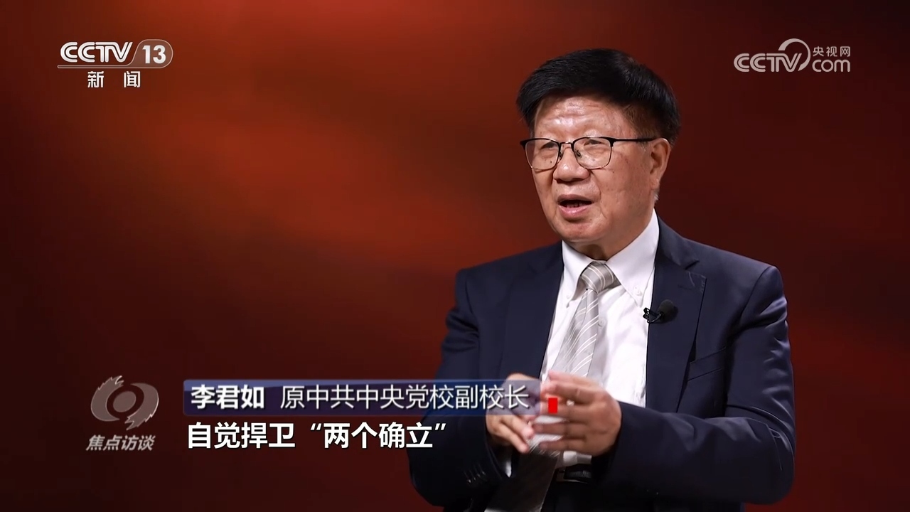 李君如:“‘兩個確立’也是政治問題,你自覺維護‘兩個確立’、自覺堅持‘兩個確立’、自覺捍衛(wèi)‘兩個確立’,還是陽奉陰違兩面人?對黨是否忠誠,對黨中央的決策是否衷心擁護?表現(xiàn)出來可能在工作上、可能在組織紀律上、可能在生活作風上,但是背后的問題是政治問題,所以政治建設(shè)要統(tǒng)領(lǐng)黨的建設(shè)方方面面,要作為黨的各方面建設(shè)的第一位建設(shè)。”
