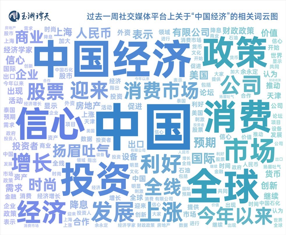 譚主對過去一周社交媒體平臺(tái)上“中國經(jīng)濟(jì)”相關(guān)的討論進(jìn)行大數(shù)據(jù)分析,得到了這樣一張圖。