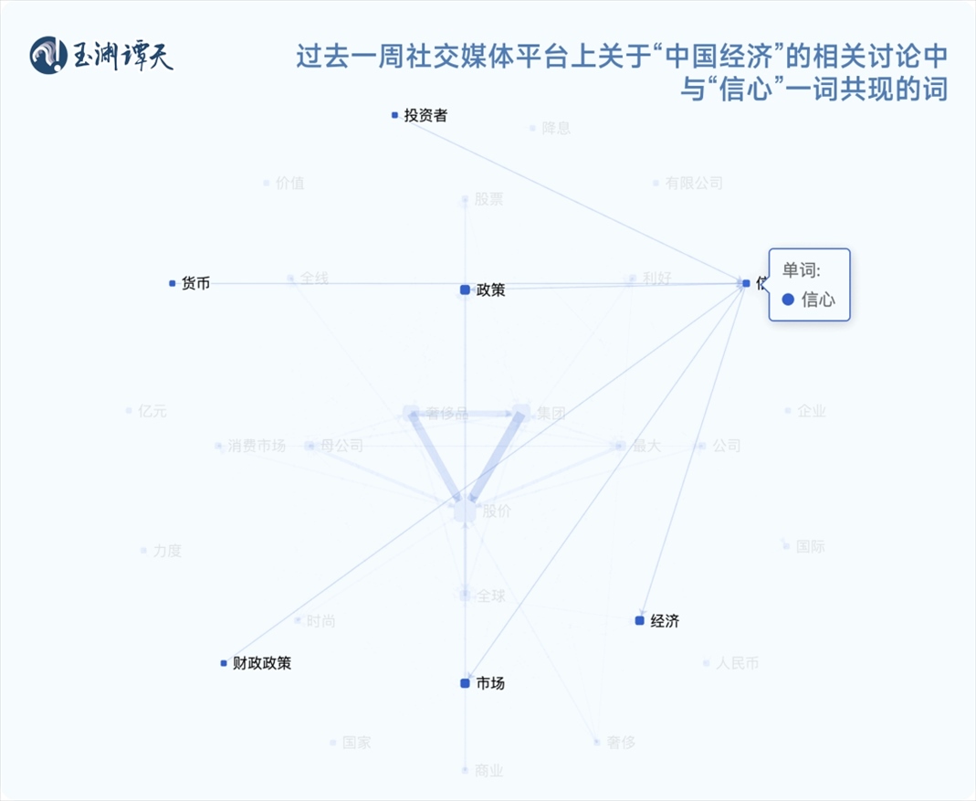 這些共現(xiàn)關(guān)系,呈現(xiàn)出過去一周輿論信心增強(qiáng)的一條清晰路徑: