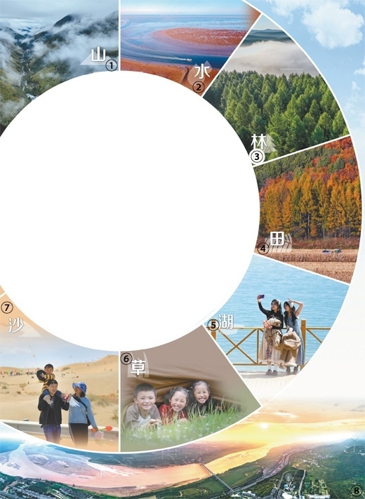 圖①:雨后的武夷山國(guó)家公園云霧繚繞。國(guó)家公園是我國(guó)自然生態(tài)系統(tǒng)中最重要、自然景觀最獨(dú)特、自然遺產(chǎn)最精華、生物多樣性最富集的部分,我國(guó)國(guó)家公園建設(shè)是生態(tài)文明建設(shè)中具有示范引領(lǐng)意義的工程。邱汝泉攝(新華社發(fā))圖②:山東東營(yíng)市紅灘濕地旅游區(qū)生態(tài)濕地,生長(zhǎng)在灘涂上的堿蓬等鹽生植物,如同一塊巨大的紅地毯。劉智峰攝(影像中國(guó))圖③:河北承德市圍場(chǎng)滿族蒙古族自治縣塞罕壩國(guó)家森林公園。組建至今,塞罕壩機(jī)械林場(chǎng)營(yíng)造人工林百萬(wàn)畝,創(chuàng)造了荒原變林海的奇跡。劉滿倉(cāng)攝(影像中國(guó))圖④:黑龍江雞西密山市黑土地上種植的玉米。近年來(lái),我國(guó)加強(qiáng)黑土地保護(hù),守護(hù)“耕地中的大熊貓”。孫樹寶攝(影像中國(guó))圖⑤:游客在青海湖畔拍照。當(dāng)?shù)亓己玫纳鷳B(tài)環(huán)境和優(yōu)美的景色吸引了來(lái)自全國(guó)各地的大量游客。新華社記者 張 龍攝圖⑥:四川甘孜藏族自治州日通草原上,躲在帳篷里的小朋友享受假日生活。我國(guó)持續(xù)推進(jìn)草原生態(tài)保護(hù)修復(fù),穩(wěn)步提升草原生態(tài)功能。新華社記者 江宏景攝圖⑦:新疆博湖縣博斯騰湖畔的艾勒遜烏拉沙漠,游客正帶著孩子在游玩。近年來(lái),我國(guó)推進(jìn)科學(xué)化、規(guī)?;紊?,重點(diǎn)治理區(qū)實(shí)現(xiàn)“沙進(jìn)人退”到“綠進(jìn)沙退”的歷史性轉(zhuǎn)變。年 磊攝(人民視覺(jué))圖⑧:黃河陜西潼關(guān)段景觀。近年來(lái),我國(guó)持續(xù)推動(dòng)黃河流域生態(tài)保護(hù)和高質(zhì)量發(fā)展,流域生態(tài)環(huán)境持續(xù)明顯向好,讓黃河成為造福人民的幸福河。王生暉攝(人民視覺(jué))