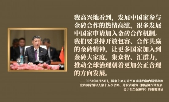 近年來,習近平主席圍繞擴大金磚合作、推進金磚擴員作出一系列重要論述。