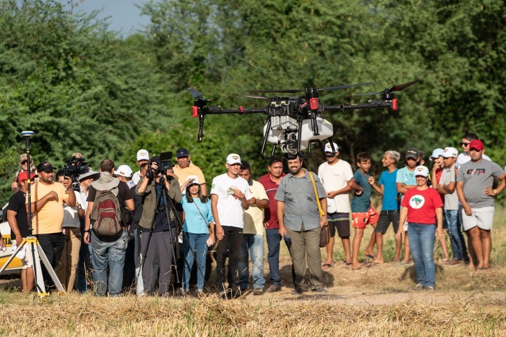 2024年2月2日,中巴農(nóng)業(yè)機(jī)械化合作示范項(xiàng)目啟動(dòng)儀式在巴西阿波迪舉行,第一批來自中國(guó)7家農(nóng)機(jī)企業(yè)共31臺(tái)(件)設(shè)備正式交付給巴西農(nóng)村勞動(dòng)者組織。這是人們觀看一款中國(guó)生產(chǎn)的農(nóng)用無人機(jī)。
