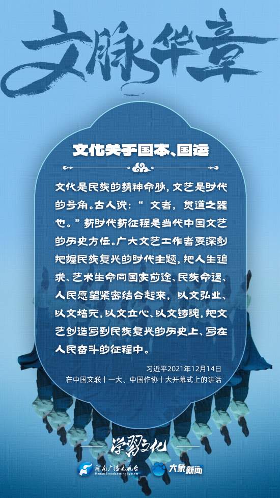 習(xí)近平總書記高度重視文化之于國(guó)家、之于民族的重大意義,強(qiáng)調(diào):文化是一個(gè)國(guó)家、一個(gè)民族的靈魂。文化興國(guó)運(yùn)興,文化強(qiáng)民族強(qiáng)。沒有高度的文化自信,沒有文化的繁榮興盛,就沒有中華民族偉大復(fù)興。大象新聞梳理了習(xí)近平總書記的系列重要論述,我們一起學(xué)習(xí)。