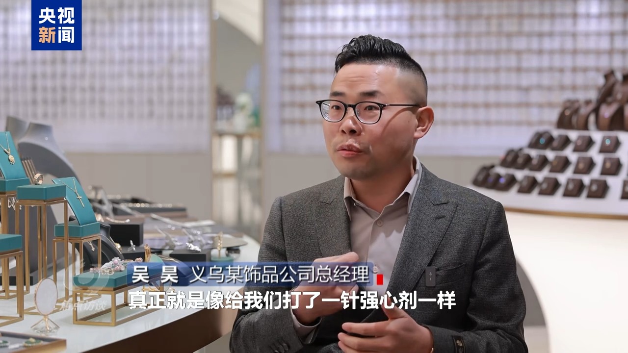 義烏某飾品公司總經(jīng)理 吳昊:總書記提出了國內(nèi)國際雙循環(huán)的事,對(duì)我們企業(yè)來說,真正就是像給我們打了一個(gè)強(qiáng)心劑一樣,就是堅(jiān)定了我們未來發(fā)展方向,企業(yè)就沒有那么迷茫了。
