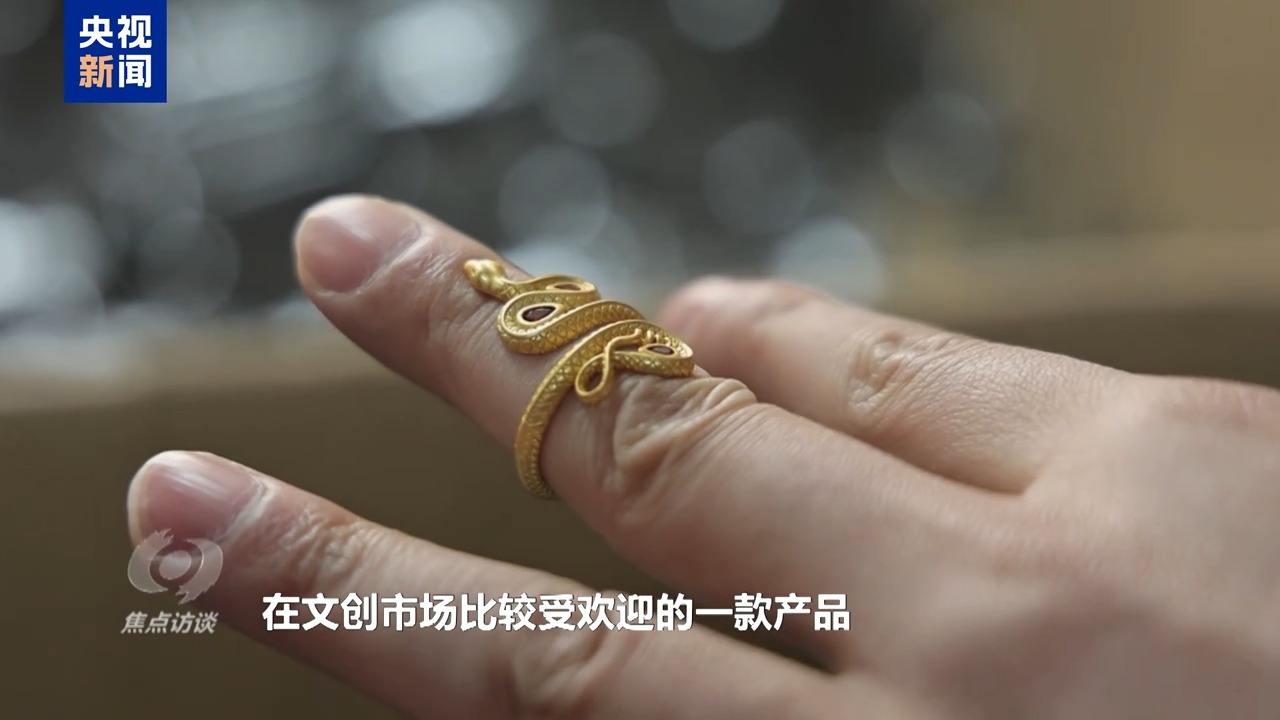義烏某飾品公司總經(jīng)理 吳昊:這個(gè)是我們給國家博物館做的一款新年生肖款,你看看,這個(gè)是一款戒指,就適合當(dāng)下年輕人,在文創(chuàng)市場(chǎng)比較受歡迎的一款產(chǎn)品。