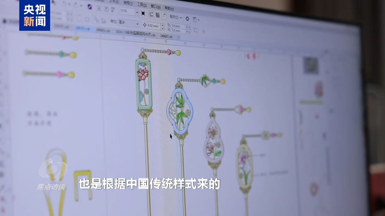 義烏某飾品公司產(chǎn)品設(shè)計(jì)師 周亮:梅蘭竹菊有傳統(tǒng)的一些寓意,然后這些圖案的外形,也是根據(jù)中國傳統(tǒng)樣式來的。材料方面,我主要是想體現(xiàn)中國的那種翡翠的感覺。
