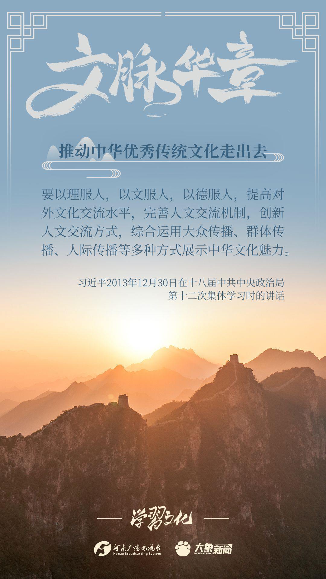 黨的十八大以來,習近平總書記高度重視中華優(yōu)秀傳統(tǒng)文化的傳承發(fā)展,突出強調推動中華優(yōu)秀傳統(tǒng)文化走出去,作出了一系列重要論述,大象新聞邀您一起學習。