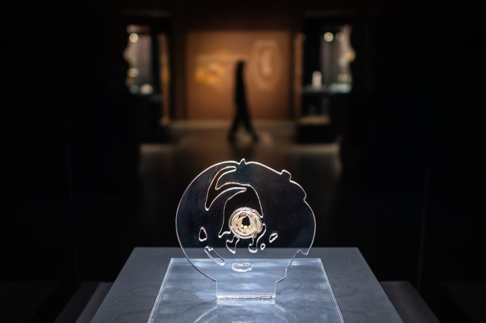 在武漢盤龍城遺址博物院拍攝的玉團(tuán)鳳(2024年3月30日攝)。1955年,玉團(tuán)鳳于湖北天門石家河遺址出土,造型秀美,線條遒勁流暢,被譽(yù)為“中華第一鳳”。石家河遺址距今約5000年,是長江中游同期規(guī)模最大的聚落。