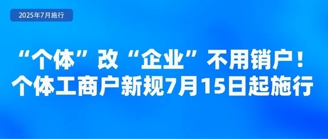 市場(chǎng)監(jiān)管總局近日發(fā)布《個(gè)體工商戶(hù)登記管理規(guī)定》,規(guī)定于7月15日起正式施行。規(guī)定明確個(gè)體工商戶(hù)可以通過(guò)變更登記方式轉(zhuǎn)型為企業(yè),保留統(tǒng)一社會(huì)信用代碼、成立時(shí)間、名稱(chēng)字號(hào)和相關(guān)行政許可。規(guī)定完善了登記規(guī)則,個(gè)體工商戶(hù)經(jīng)營(yíng)場(chǎng)所發(fā)生變化時(shí),可以像企業(yè)一樣辦理跨區(qū)域遷移。規(guī)定還明確了個(gè)體工商戶(hù)經(jīng)營(yíng)權(quán)繼承的相關(guān)要求,為老字號(hào)“換人不換招牌”提供制度保障。