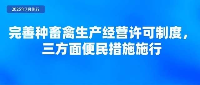 農(nóng)業(yè)農(nóng)村部公布了《種畜禽生產(chǎn)經(jīng)營(yíng)許可管理辦法》,于2025年7月1日起實(shí)施。《辦法》規(guī)定了三方面便民措施。一是統(tǒng)一平臺(tái)辦理。種畜禽生產(chǎn)經(jīng)營(yíng)許可證的申請(qǐng)、受理、審核、核發(fā),統(tǒng)一在中國(guó)種業(yè)大數(shù)據(jù)平臺(tái)辦理,平臺(tái)提供查詢(xún)、核驗(yàn)等功能,并與全國(guó)一體化在線(xiàn)政務(wù)服務(wù)平臺(tái)對(duì)接。二是統(tǒng)一有效期?!掇k法》將有效期統(tǒng)一確定為5年,并明確已取得的種畜禽生產(chǎn)經(jīng)營(yíng)許可證有效期不變,到期后按照新規(guī)定辦理。三是簡(jiǎn)化變更手續(xù)。對(duì)變更生產(chǎn)經(jīng)營(yíng)者名稱(chēng)、法定代表人(負(fù)責(zé)人)以及從事父母代種畜禽(含品種和配套系)和商品代仔畜、雛禽生產(chǎn)經(jīng)營(yíng),需要變更其生產(chǎn)經(jīng)營(yíng)的畜禽品種的,向原發(fā)證機(jī)關(guān)提交變更申請(qǐng)表及證明材料,符合條件的,原發(fā)證機(jī)關(guān)在十五個(gè)工作日內(nèi)即予以變更。