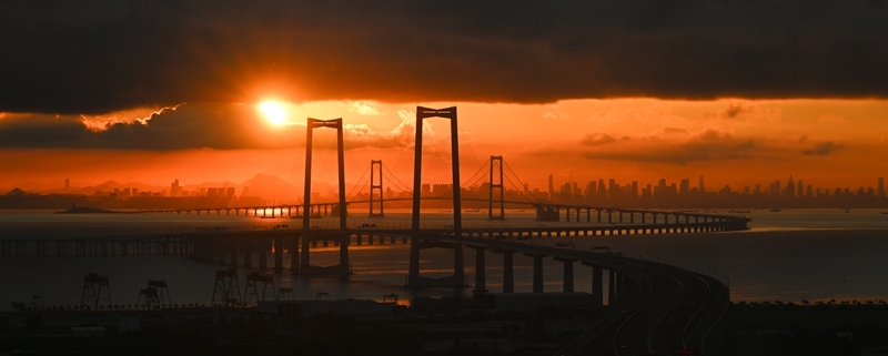 9月14日拍攝的沐浴在晨曦之中的深中通道與遠(yuǎn)處的深圳市區(qū)。