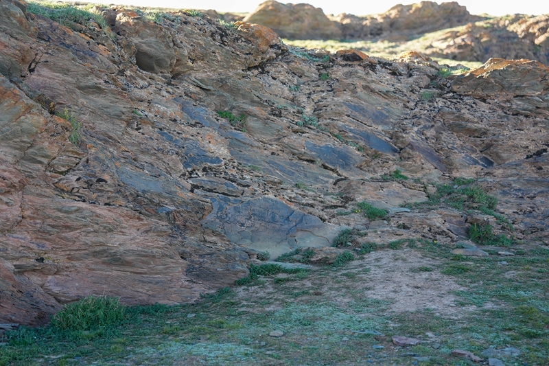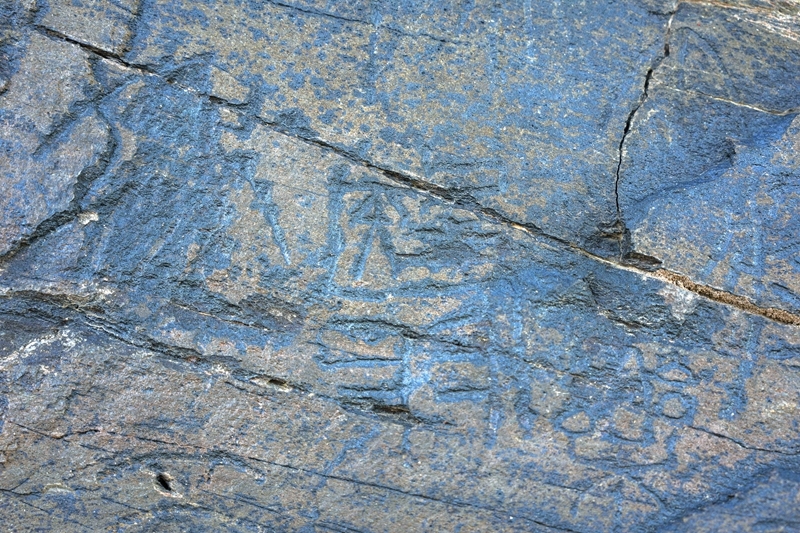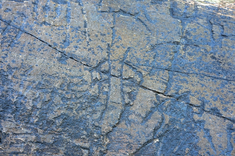 文物考古工作者于2023年7月在青海省瑪多縣扎陵湖畔對尕日塘秦刻石進行現(xiàn)場考察時拍攝的該刻石遺跡照片。