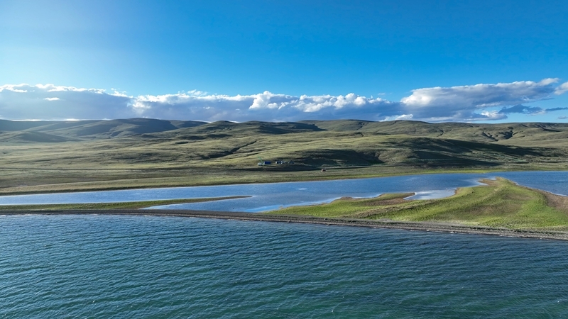 7月25日拍攝的“尕日塘秦刻石”所在地青海省果洛藏族自治州瑪多縣扎陵湖北岸(無人機照片)。