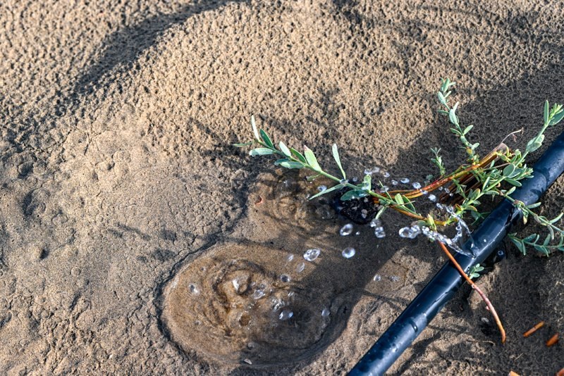 在新疆尉犁縣境內的塔里木河南岸防沙治沙區(qū)拍攝的利用滴灌灌溉的羅布麻(9月20日攝)。
