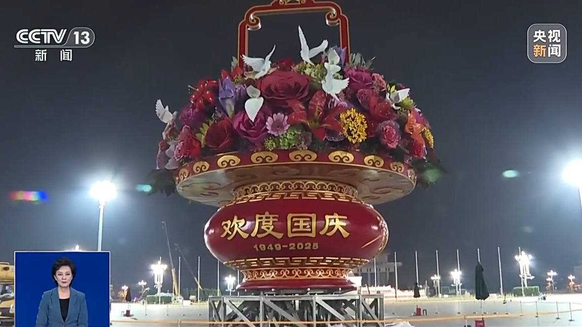 22日凌晨,天安門(mén)廣場(chǎng)中心的“祝福祖國(guó)”巨型花籃吊裝完成,籃盤(pán)與籃肚精準(zhǔn)合龍。巨型花籃是如何組裝的?今年的花籃有哪些新亮點(diǎn)?