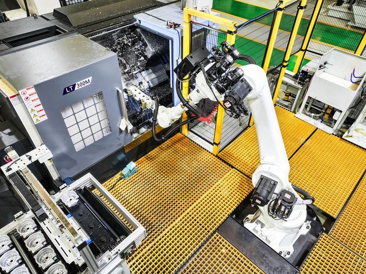這是2025年5月9日在位于重慶市北碚區(qū)的重慶順多利機(jī)車(chē)有限責(zé)任公司精工基地拍攝的自動(dòng)化生產(chǎn)作業(yè)現(xiàn)場(chǎng)(無(wú)人機(jī)照片)。新華社記者 王全超 攝