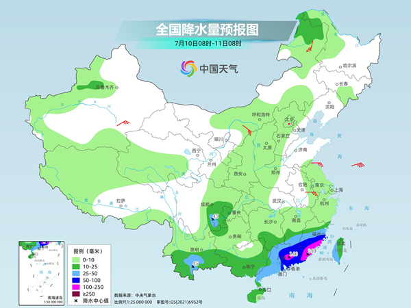 明天,新疆伊犁河谷地區(qū)、內(nèi)蒙古東北部、江南中南部、四川盆地南部、云南南部、華南大部等地有中到大雨,其中,江西南部、福建東部和南部、廣東中東部和西北部等地的部分地區(qū)有暴雨,局地大暴雨。